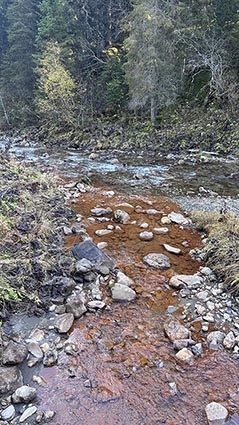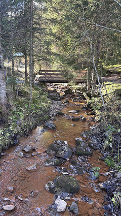 L’Eau Rouge est une source emblématique de Morgins, connue pour sa couleur rouge caractéristique due à sa forte teneur en fer. En circulant dans le sous-sol, l’eau se charge en minéraux. Lorsqu’elle entre en contact avec l’air, le fer s’oxyde et colore l’eau et les roches environnantes de teintes rougeâtres.