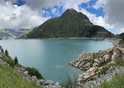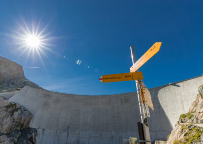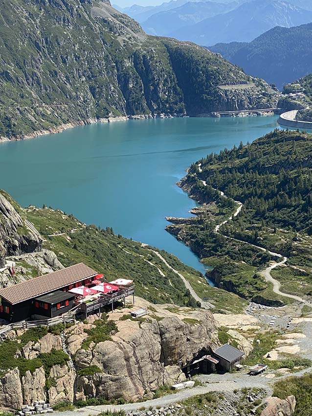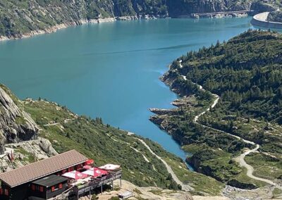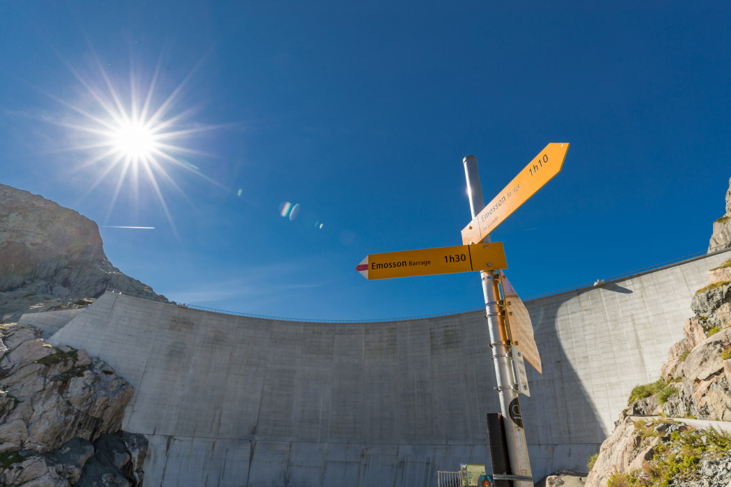 Prenez le temps de faire une pause à la buvette d’Émosson. Le lieu est idéal pour admirer le lac et le barrage en contrebas, tout en se trouvant au pied du barrage du Vieux Émosson. Ce barrage fait 45 mètres de hauteur, de quoi vous sentir petit face à cet édifice hydroélectrique au coeur des Alpes.